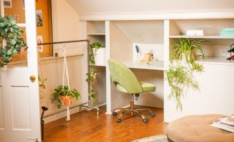 The Loft features a library, wine collection, two bedrooms with stunning art throughout. Lace up your boots before you set off to enjoy the miles of trails, visit our donkeys, goats, and horses, stop by Wayvine winery just down the street or enjoy s'mores amongst the stars.