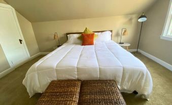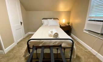 The space allows you to wake up to serene scenes and enjoy your morning coffee on the cozy front porch. Experience the charm of a town rich in history by wandering through streets lined with beautifully preserved architecture, soaking in the unique stories of the past. With three spacious bedrooms, our home comfortably accommodates families or groups, with each room bathed in natural light to create a warm and welcoming atmosphere. The single bathroom is stylishly designed for your comfort and convenience, ensuring a pleasant stay.