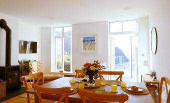 On warmer days, step onto the private outdoor terrace to soak up the panoramic coastal views, enjoy alfresco dining, or unwind with your favorite drink as the sun sets over the bay. On cooler evenings, retreat indoors and curl up by the wood-burning fire, creating the perfect cosy and relaxing atmosphere.