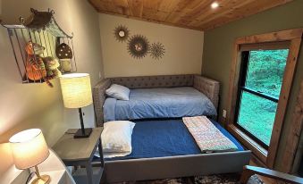 Located in Franklin, enjoy what this 2-bedroom cabin has to offer. The cabin features a fully equipped kitchen, washing machine/ dryer, and WiFi for convenience. Relax after a day of hiking or antiquing at the serene outdoor patio with firepit or the covered front porch. Wash the day away in the indoor or outdoor shower in privacy and comfort. We think our place will help you experience everything that's wonderful about life in the Smokies!About pets:Pets allowed: dogs less than 50 lbs per pet (limit 2 pets total).About children:Children allowed: ages 0-17.About smoking:Smoking is not permitted.About events:No events allowed.