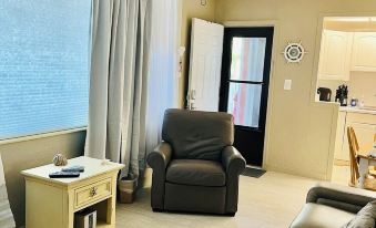 We liked the privacy since the sidewalk does not go by the door and it is far from the road. The kitchen was well stocked and the bed was very comfortable. Dave the manager and Sue the cleaner were hospitable and accommodating. The beach is right across the street and there are places nearby to walk to for meals out. The room was equipped with lots of towels including pool towels. Having a coin washer and dryer on site was helpful. We loved our stay and plan on coming back again!