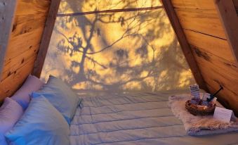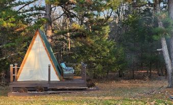 Two A-frame pods with a full size bed in each. Also provided are small propane heaters for cooler nights. There is a water tower hooked to a sink for cleaning dishes or washing hands. Listing price is for entire site with both pods included. For additional people other than the 4 original guests there is plenty of room to pitch tents in the camp yard and each extra guest will be an additional $5 per person. For anyone who just needs one pod message to get a discounted price. At this time we don’t have electricity hookups available. (Across the field from the campsite are Turkey houses that could have potential smell)About pets:Pets allowed: dogs and cats (limit 2 total).About checkOut:Check out before 12:00 PM.About children:Children allowed: ages 0-17.*Drop off cliffs in surrounding area.*.About checkIn:Check in after 2:00 PM.About smoking:Smoking allowed: in designated areas.Place used cigarettes in the fire pit or trash..About minBookingAge:Minimum age to rent: 18.About events:Events allowed: family gatherings, birthday parties, weddings.Maximum event attendees: 20.