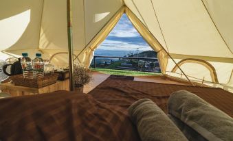 'Glamping ' -quite fully booked. Mostly local guests. Plenty of parking. Good view. Simple settings. Clean tents. Shower with hot water and flush toilet. Basic bathroom amenities (towels, soap and shampoo) . But the bathroom door didn't slide properly, every time being opened and closed was a bit of a struggle. No WiFi available (on Agoda , it said there was). 9 minutes walked to other restaurants (mainly run by other glamping sites). Village dogs and roosters could be loud thru the night (it was ok). BUT what kept me awake was , there was some kind of 'warning announcement ' running thru the night, what it sounded like was warning for something was running low on battery. Breakfast delivered to your tent.
