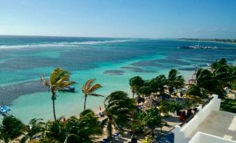 AVOID EXTRA CHARGES FOR LEAVING AIR CONDITIONING ON WHEN YOU ARE NOT IN YOUR ROOM. For the details of the description is that the room is so cheap. The building is right in front of the sea but the room is on a second floor with a side view and has a balcony with a side view where you can perfectly see part of the sea as the photo shows. The beach has lounge chairs just consume a little to make use of them.