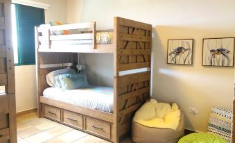 3 bedrooms: 2 bunk beds 1 single bed and 2 king beds