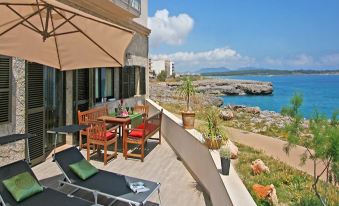 The charming holiday home La Marisol is located directly by the sea in a quiet residential area on the southern edge of S'Illot. This semi-detached house forms the lower part of a two-storey house with easy access via a spacious courtyard and a lovely terrace with direct access to the small rocky plateau by the sea, ideal for swimming for experienced guests.