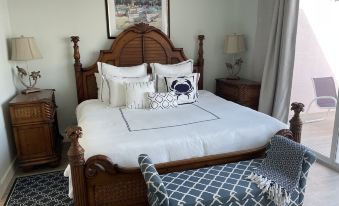 The master bedroom has a spacious en-suite bath appointed with marble shower and walls. A double sink vanity with natural quartzite countertops completes the master suite, to ensure your comfort and convenience. Bedding in the master is a king size bed. The second bedroom can accommodate 4 guests with a twin-over-queen bunk set and a pullout twin trundle bed. The guest bedroom has an en-suite bath with a tub/shower combination.