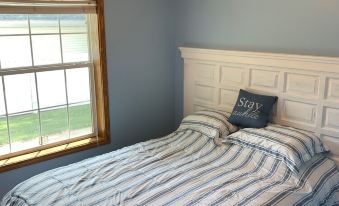 New owners and newly decorated cottage features a spacious kitchen and living room, 3 bedrooms (Master has 1 Queen, Guest Bedroom has 1 Queen, & Kids room has 2 sets of Triple Bunk Beds), 2 bathrooms, a full laundry room, and an outside living space. Guests will have access to the entire home. Fold down couch available in living room for additional sleeping. Quiet, lake community with a nice mix of low-key locals and summer tourists.