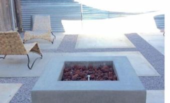 In the heart of Marfa and with in walking distance to The St. George Hotel, The Chianti Foundation, Main Street, and several restaurants and bars. Originally a commercial building this unique, modern 1 bedroom apartment is an amazing place to relax and enjoy the sights and stars. This apartment features one bedroom and a large patio retreat with an amazing fire pit!
