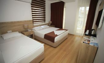 Хороший отель на второй линии напротив муниципального пляжа. Находится на небольшом удалении от приморского бульвара, поэтому вечером и ночью музыка не мешает. Основные достопримечательности города: центральная площадь, гавань и др. - в шаговой доступности. До кафе с пляжами идти 5 минут. Рядом с отелем остановки, с которых можно уехать как в сторону автостанции, так и в сторону пляжей Ичмелера и Турунча. Номер светлый, с удобным балконом для чаепитий.