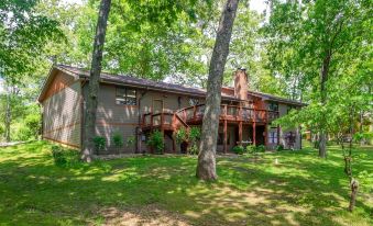 Let this exquisite 4-bedroom, 2-bath vacation rental cabin serve as the ultimate luxury setting for your next lakeside getaway! The wheelchair accessible, pet friendly cabin sleeps 8 and boasts a massive deck, 2 barbecue grills, private dock, fire pit, 2 acres of land, a remodeled interior, and a paved pathway down to the lake. This cabin and property won't disappoint! This lakefront paradise will have you swimming and boating off the dock by day, enjoy cocktails and appetizers on the deck come evening, and closing out the night roasting s’mores around the fire pit! Whether you're planning a relaxing family getaway or a fun gathering with friends, you can't go wrong with this cabin that also provides for your use 2 kayaks, 2 Tower paddle boards, board games, and a corn hole set.