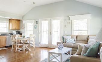 This newly furnished cottage has a comfortable open floor plan featuring high vaulted ceilings. The full kitchen includes all the utensils and appliances for cooking a delicious meal. The living room includes a large sectional couch for watching TV or conversing with the family. The 55 inch smart HD TV has Netflix, Hulu, and Amazon built in for your convenience.