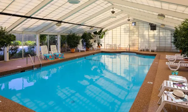 Very nice indoor, heated pool and outdoor pool. Apartment was comfortable and roomy. Staff was pleasant. Pools close early on weekdays - 4:45.