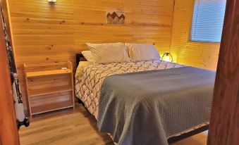 Queen Log Bed, Small Dresser, Bedside Tables, Fan, and a Full-Length Mirror. Located on 1st floor (main floor).