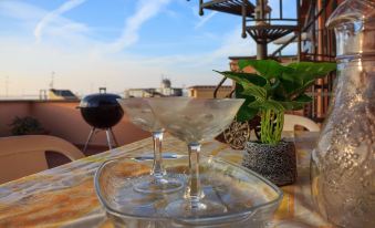 The Casa Felicità accommodation is an apartment on two levels (second and third floors of the building): bathroom, kitchen, dining room and a terrace are on one floor; a large living room with sofa bed, a double bedroom, and another terrace are on the upper floor.