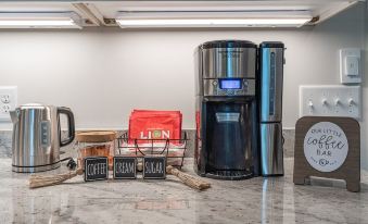- The kitchen is equipped with a full suite of appliances, including microwave, oven, refrigerator, dishwasher, toaster, blender, crockpot, electric kettle, coffee machine and all the needed essentials.