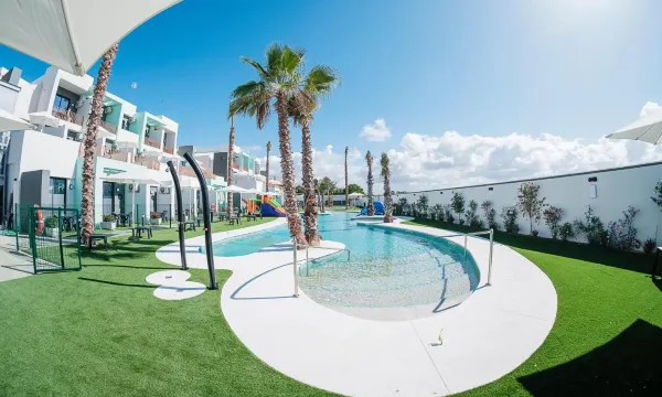 Óptimo espaço, ideal para quem procura relaxar. Fica perto da praia e do centro. O espaço junto à piscina é muito agradável, o pequeno almoço é diferente do buffet tradicional mas é de óptima qualidade de perfeitamente suficiente. É um sítio diferente dos Restantes hotéis em matalascanas que normalmente tem mais gente mais barulho mais confusão.