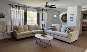 This home offers an open layout for plenty of room to enjoy family time! 3 bedrooms (1 king, 1 Queen, 1 Full) all featuring smart tv’s and closets. Queen sofa sleeper in the living room and queen air mattress available. 2 full bathrooms with double sinks. Central air, BBQ grill, fire pit, washer & dryer.About pets:No pets allowed.About checkOut:Check out before 10:00 AM.About children:Children allowed: ages 0-17.About checkIn:Check in after 3:00 PM.About smoking:Smoking is not permitted.About minBookingAge:Minimum age to rent: 25.About events:No events allowed.