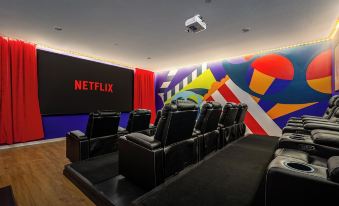 ☀ One-of-a-kind CUSTOM movie theater, with huge projector screen & 3 rows of movie theater seats!
