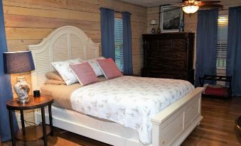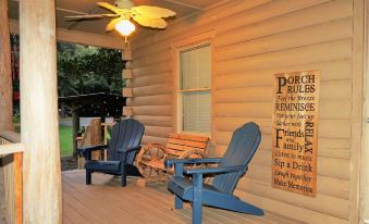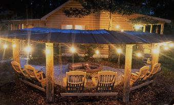 Driving on to the property, you will notice the massive 200+ year old oak trees with beautiful hanging Spanish moss. And as soon as you walk in to the cabin, you know you are at home with high ceilings and a beautiful large master bedroom. Outside is a wonderful fire pit with swinging chairs to enjoy a relaxing fire with your loved ones. And the 2 person hot tub is perfect for chilly nights with a glass of wine.