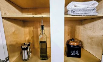 • Cooking Essentials - Pots, Pans, Baking Pans & Sheets, Cooking Utensils, Salt, Pepper, Olive Oil, Sugar