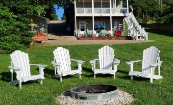 Dawn on the Lake provides outdoor activities for the whole family. The lakeside front yard is grass-covered and perfect for play, swinging under the pergola, or a good night story next to the fire pit under the night sky filled with stars. The property has a private pier equipped with rubber bumpers from which you can safely fish, float, and swim. The water is relatively shallow, so jumping or diving from the dock is not permitted. If you have a boat, you can launch at the recreational area just minutes away and dock at the pier. The beautiful, wide creek is great for water skiing, jet skiing, fishing, or just cruising. A canoe and kayak are available for your use. Paddles are included, but be sure to bring your own life jackets.