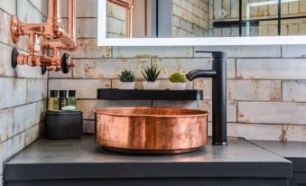 Designed with creativity and connectivity in mind, rustic vibes-meet-modern living in this Soho Farmhouse-inspired bolthole. The open plan living space - complete with exposed brick walls, reclaimed wood ceiling, stunning kitchen and a log burner in the corner - is a pinch-yourself sanctuary for all those seeking an escape from the everyday. From the spacious yet secluded courtyard to the carefully curated greenery, this self-catered hideaway has countryside walks from your doorstep, with nothing but relaxation waiting for you on your return.