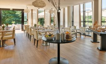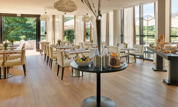 The restaurant, Les Alizes, is situated across from the golf course and swimming pool. It serves seasonal and traditional French cuisine. Guests are invited to relax in the bar, Le Swing, which has a terrace next to the pool (only open in the summer).