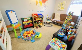 Private children’s playroom with toys and a pull-out couch (can be used as an extra bedroom)