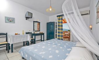 Got picked up from the airport by Ionnis the owner. The location was perfect on the beach. Family owned business. The room is spacious clean with a big terrace; with air conditioning tv and wifi works perfectly and with a magnificent vue on the beach. The room was cleaned everyday and even got twice greek dishes from the mom. Beautiful beaches surrounding the area. Bakery restaurants and supermarket all at 5 min walk. I'll definitely come back and recommend it u won't be disappointed