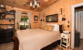 Amenities: Wi-Fi, Three Bedrooms (Master/Queen, 2nd queen, 3rd twins), One Bath (tub/shower, and an outdoor shower with hot/cold water), Fully Equipped and recently remodeled Kitchen and dining room (microwave, pots/pans, dishes/utensils), Brand New Central A/C and Heating Unit, Overhead Fans, Gas Fireplace, Washer/Dryer, 3 Covered Porches, Open Decks, BBQ Grill (gas/charcoal), Porch Furniture, Linens (pillows, towels, sheets, blankets, dish cloths, placemats) 2 TV’s (Satellite TV Service), Local Phone Service (cell phones only work with Stark link wifi), Very Private and Secluded, 17 Acres, Private Lake (dock, paddle boat, canoe, fishing), Great View, Ample Parking, Easy Access, (13 miles from town/grocery), No Smoking Indoors.