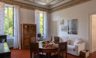 Beautiful, historical 2-family house "Val Prino". 2 apartments in the property. In the district of Molini di Prelà, 2.5 km from the centre of Dolcedo, 9 km from the centre of Imperia, in a sunny position in the residential district, 9 km from the sea, 700 m from the river. Private: beautiful, well-kept garden (fenced) with flowers and trees, meadow. In the complex: restaurant, storage room for bicycles. Available: bicycles (2). Public parking 100 m. Shop 100 m, supermarket 9 km, restaurant 100 m, bakery 100 m, café 150 m, bicycle rental 3 km, bus stop 100 m, railway station "Porto Maurizio" 11 km, sandy beach "Imperia - Porto Maurizio" 9 km, bathing lake "laghetti" 1 km. Tennis 3 km, riding stable 5 km, walking paths from the house, cycle lane 9 km, children's playground 20 m. Nearby attractions: Valloria paese delle porte dipinte 3 km. Well-known lakes can easily be reached: Laghetti di Lecchiore 8 km. Hiking paths: Monte Faudo 15 km, Santa Brigida 10 km. "Costanza (PRE130)", 4-room apartment 120 m2 on 2nd floor. Stylish and romantic furnishings: large living/dining room with 1 double sofabed (1 x 160 cm), Scandinavian wood stove, dining table, satellite TV, radio and CD-player. 1 room with 1 french bed (160 cm). Exit to the terrace. 1 room with 1 french bed (160 cm). 1 room with 1 x 2 bunk beds (80 cm). Open kitchen (mini-oven, oven, 4 gas rings, toaster, kettle, freezer, electric coffee machine) with small dining table. Exit to the veranda. 2 showers/WC. Gas heating. 2 terraces partly covered, patio, garden, porch. Terrace furniture, barbecue (portable), deck chairs (2). Facilities: washing machine, iron, children's high chair, baby cot. Maximum 2 pets/ dogs allowed. Bed layout is flexible. There are more sleeping options available than the maximum number of people allowed which may, however, not be exceeded. IT008047B5SRODZQ98