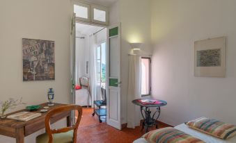 Beautiful, historical 2-family house "Val Prino". 2 apartments in the property. In the district of Molini di Prelà, 2.5 km from the centre of Dolcedo, 9 km from the centre of Imperia, in a sunny position in the residential district, 9 km from the sea, 700 m from the river. Private: beautiful, well-kept garden (fenced) with flowers and trees, meadow. In the complex: restaurant, storage room for bicycles. Available: bicycles (2). Public parking 100 m. Shop 100 m, supermarket 9 km, restaurant 100 m, bakery 100 m, café 150 m, bicycle rental 3 km, bus stop 100 m, railway station "Porto Maurizio" 11 km, sandy beach "Imperia - Porto Maurizio" 9 km, bathing lake "laghetti" 1 km. Tennis 3 km, riding stable 5 km, walking paths from the house, cycle lane 9 km, children's playground 20 m. Nearby attractions: Valloria paese delle porte dipinte 3 km. Well-known lakes can easily be reached: Laghetti di Lecchiore 8 km. Hiking paths: Monte Faudo 15 km, Santa Brigida 10 km. "Valeria (PRE131)", 2-room apartment 45 m2 on 2 levels. Stylish and romantic furnishings: upper floor: shower/WC. 2nd upper floor: living/sleeping room with 1 bed (80 cm), Scandinavian wood stove and satellite TV. Exit to the terrace. 1 room with 1 french bed (160 cm). Open kitchen (oven, 4 gas rings, toaster, kettle, freezer, electric coffee machine) with dining table. Exit to the garden, to the terrace. Sep. WC. Gas heating. 2 terraces, patio, garden. Terrace furniture, barbecue (portable), deck chairs (2). Facilities: washing machine, children's high chair, baby cot. Free. Maximum 2 pets/ dogs allowed. IT008047B5SRODZQ98