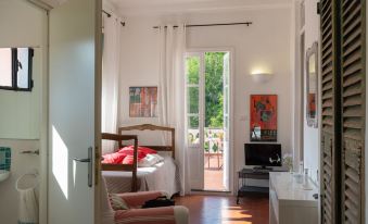 Beautiful, historical 2-family house "Val Prino". 2 apartments in the property. In the district of Molini di Prelà, 2.5 km from the centre of Dolcedo, 9 km from the centre of Imperia, in a sunny position in the residential district, 9 km from the sea, 700 m from the river. Private: beautiful, well-kept garden (fenced) with flowers and trees, meadow. In the complex: restaurant, storage room for bicycles. Available: bicycles (2). Public parking 100 m. Shop 100 m, supermarket 9 km, restaurant 100 m, bakery 100 m, café 150 m, bicycle rental 3 km, bus stop 100 m, railway station "Porto Maurizio" 11 km, sandy beach "Imperia - Porto Maurizio" 9 km, bathing lake "laghetti" 1 km. Tennis 3 km, riding stable 5 km, walking paths from the house, cycle lane 9 km, children's playground 20 m. Nearby attractions: Valloria paese delle porte dipinte 3 km. Well-known lakes can easily be reached: Laghetti di Lecchiore 8 km. Hiking paths: Monte Faudo 15 km, Santa Brigida 10 km. "Costanza & Valeria (PRE133)", 6-room apartment 165 m2 on 2 levels. Stylish and romantic furnishings: on the lower ground floor: shower/WC. Upper floor: living/sleeping room with 1 bed (80 cm), Scandinavian wood stove. Exit to the terrace. 1 room with 1 french bed (160 cm). Open kitchen (oven, 4 gas rings, toaster, kettle, freezer, electric coffee machine) with dining table. Sep. WC. 2nd upper floor: living/dining room with Scandinavian wood stove, dining table, satellite TV, radio and CD-player. 1 room with 1 french bed (160 cm). Exit to the terrace. 1 room with 1 french bed (160 cm). 1 room with 1 x 2 bunk beds (80 cm). Open kitchen (4 gas rings, toaster, kettle, freezer, electric coffee machine) with dining table and wood-burning stove. Exit to the veranda. 2 showers/WC. Gas heating. 4 terraces partly covered, patio, garden, porch. Terrace furniture, barbecue (portable), deck chairs (4). Facilities: washing machine, iron, children's high chair, baby cot. Maximum 2 pets/ dogs allowed. No internal connecting door between the separated properties. No internal connecting door between the floors. Bed layout is flexible. There are more sleeping options available than the maximum number of people allowed which may, however, not be exceeded. IT008047B5SRODZQ98