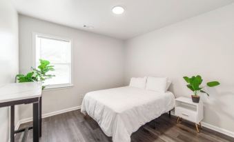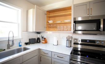 Almost everything in this home is brand new, from the appliances and floors to paint job to the sinks and showers. The space was exceptionally clean, and the master (king) foam bed was very comfortable. While the water pressure was on the lower side, the shower was spotless, and the water temperature was consistent. The home is located in a lower-income area, but it felt safe—neighbors were friendly, and I even saw a family playing ball with their child next door. The large backyard is beautiful, adding to the overall appeal. It’s also very close to town, making it easy to get around. One thing to note for light sleepers: the house is near a road so traffic noise is unavoidable, and there’s a train that runs during the week and wasn't fun to listen to at night. I had earplugs, so it wasn’t an issue for me, but bringing earplugs and an eye mask for excess outside light would be a pro tip for those staying here. The host was incredibly responsive, which made the stay even smoother. Overall, a great option for those looking for a clean, modern space close to town!