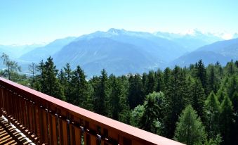 Enjoy the central but very quiet location in the middle of Montana. The studio "Goldstern" is located in the attic of the house "Les Faverges" which can also be reached via the elevator. From the large, south-facing balcony you can enjoy a wonderful view over the treetops into the Rhone valley and the opposite Valais mountains.