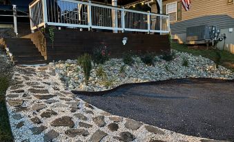 Please note the lot where the home is located has a steep hill and is not ADA accessible. There are steps leading down from the upper patio to the home.