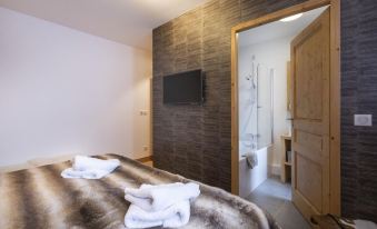 The Chalet is made up of 8 luxury apartments with personalized services (4 *) included in your rental such as the preparation on arrival of the rooms and bathroom / bathroom, the provision of bath towels, bathroom / bathroom kits and welcome kitchen, exit cleaning, free Wi-Fi and satellite TV, fitness area, sauna, shared lounge, games area and heated storage for ski equipment (skis and boots) .... and no sleeping in the living room