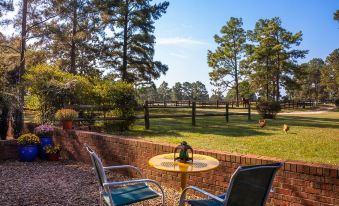 Welcome to the Horse & Hound Suite at Tanglewood Farm. Please check out our stunning one bedroom, 2 bath private apartment on our beautiful horse farm in Southern Pines, NC...horse and golf mecca of North Carolina! We offer a very beautiful one bedroom apartment, with king bed & bead boarded ceiling, sleeper sofa, vaulted wood-beamed ceilings in the family room, 2 private bathrooms, patio, smart TV, full private kitchen, coffee pot, toaster, pots & pans...everything you need to make you feel at home!