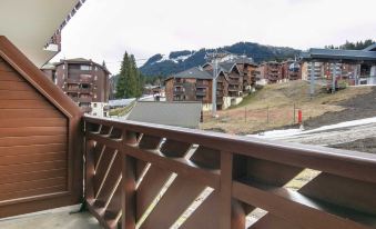 Morillon: Apartment block. 50 m from the skiing area. "Les Eterlous", 1-room apartment 34 m2 on 1st floor. Object suitable for 6 adults. 1 room with 1 double bed and TV. Kitchen (oven, dishwasher, 4 induction hot plates, toaster, kettle, microwave, freezer, electric coffee machine). Bath/WC. Balcony. View of the mountains and the ski run. Please note: non-smokers only. 1 pet/ dog allowed. Smoke alarm. Offer by a commercial proprietor according to Art. 155, IV, CGI 741900003468C
