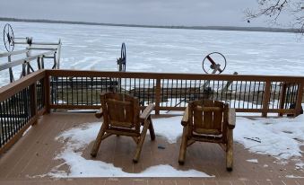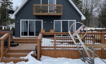 The water is steps from the wrap around deck. Enjoy sunning on the dock or the sand beach or simply just float in the water without a care in the world. Then indulge in a simple glass of wine on the deck as you watch the sun dip below the horizon, painting the sky in hues of orange and pink and blue. Let the calming sounds of the loons serenade you to sleep, promising a restful retreat from the hustle and bustle of daily life . Book your stay on Douglas Lake today. Unwind, relax, and recharge in this idyllic lakefront paradise. Your stress free getaway awaits.