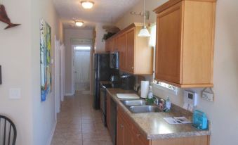 Welcome to your Oasis. The master bedroom with its comfy King size bed has a hint of a beach theme. You will also enjoy our Sailors room that offers a Queen size bed. What is unique about both rooms, they access a private patio. This is where you can soak up the sun or relax with a good book or a refreshing beverage. The third is the Island room with its double bed bunk beds, this is just perfect and very cozy. Our living room, offers a double reclining couch to sit and watch a good movie on our 60 inch flat screen television. So take a short walk to the beach and when you return you can take a nap or relax in the outdoor pool. You now will be ready for the night life of your choice !