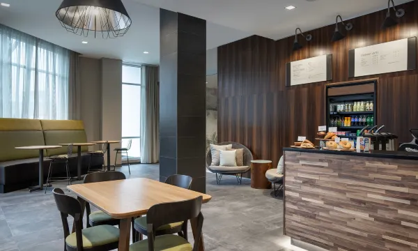 This hotel is under Marriott and is well managed by friendly staff at the front desk. Check-in and check-out are quick and smooth. Indoor guest car parking is just across the street for $9.45. The spacious rooms and bathrooms have significant counter areas decorated with bright lights. Ice machines are on every floor. Washing and drying machines are available for $3 each. The indoor swimming pool opens from 7am to 11pm, and the gym is open 24/7. The only downside was the coil of the air conditioning was installed in the room, so you will hear the big noise when the coil starts to work the room temperature colder.