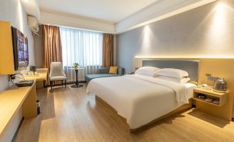 房間的衞生與設施讓人安心,床品摸起來柔軟親膚,躺上去沒有異味,衞生間的瓷磚縫隙和淋浴頭都乾乾淨淨,完全沒有衞生死角。更驚喜的是細節配置:辦公桌寬敞,桌面和床頭都有多個充電口,再也不用搶插座;空調製熱快且靜音,網絡穩定,深夜開視頻會議也沒卡頓過。