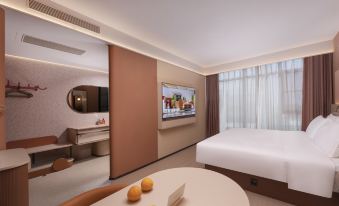房間敞亮乾淨,大床睡得超舒服,智能窗簾方便,前台貼心,洗漱用品簡約好用,體驗超棒👍(小吧枱的軟糖很好吃)