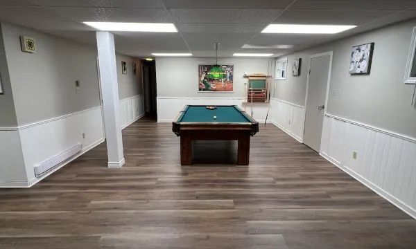 Inside, a game room with a pool table and ping pong table.About pets:Pets allowed: dogs less than 55 lbs per pet (limit 2 pets total).About checkOut:Check out before 11:00 AM.About children:Children allowed: ages 0-17.About checkIn:Check in after 4:00 PM.About smoking:Smoking is not permitted.About minBookingAge:Minimum age to rent: 21.About events:No events allowed.