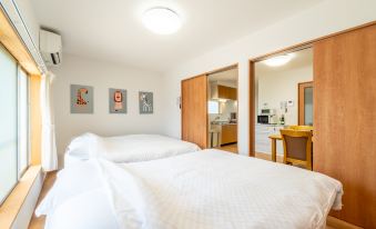 1 bedroom: 2 double beds | 2 living rooms: 1 futon bed