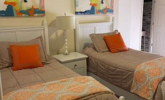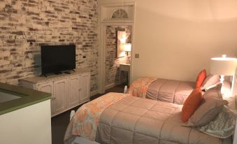Very cool shabby sheik decor. Everything you need for a relaxed stay. Just a 3 minute walk to the park overlooking the Mighty Mississippi river. The beds slept well with very nice linen and pillows. Plenty of towels in the upstairs bath. Tub in the center and a half bath on each side with entry from each bedroom. Snacks in the kitchen plus spices and everything you need to cook a meal. Regular Delongie coffee maker and a pod coffee maker. Half bath downstairs was convenient. Outside gas grill and blackstone grill. We were very pleased with our stay. Close to everything. The corner bar next door is a friendly low key place with great pours.