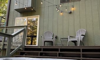A four-season wooded retreat offering a cozy getaway for families, friends, girls-weekends, get-togethers, or a couples retreat. Walk to Wintergreen Resort, dining, and slopes. Access hiking trails right off the backyard. Private hot tub on the back deck with nothing but woods behind. Indoors enjoy a cozy den with 70" HDTV, indoor basketball game, mini Pac Man machine, Wii gaming system, games and puzzles. Fast WiFi and AC. Two levels, each with two bedrooms, a bathroom, and living area.