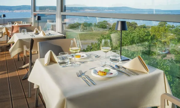 Beautiful hotel in the most beautiful area of the world I stayed in the hotel for a week and could have stayed longer. Check-in was quick, and the young lady was pleasant and helpful. They gave us a picnic bag as the restaurant had closed and it was late when we arrived The rooms are very clean and spacious. Beds are comfortable. There was just enough hanging space for me and my daughter to put our clothes. The room was cleaned every day and fresh towels, too. Amazing shower The food is delicious and a great selection and different theme every evening. They cater for all dietary requirements, and I found plenty to eat even though I have a gluten-free diet . The rooftop bar is great and has the most amazing views. There is plenty of choice on the all-inclusive menu. The marina bar in the lobby is a great bar and a great area to chill out throughout the day if you get too hot . The bar staff are all friendly and helpful and speak extremely good English. Luca is adorable and very hard working There's plenty of places to sunbathe but you have to be quick to get near the pool and like every hotel people put towels on beds and then wander off for ages . You have to pay for the safe which I did but find it annoying when keeping your valuables safe comes at a cost. There's a iron , and ironing board and kettle in the room too. The walk to old town is approximately 10 mins but wear comfortable shoes.
